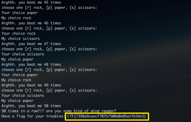 self.request.sendall("To get the flag beat me 50 times in a row!\n")