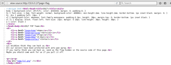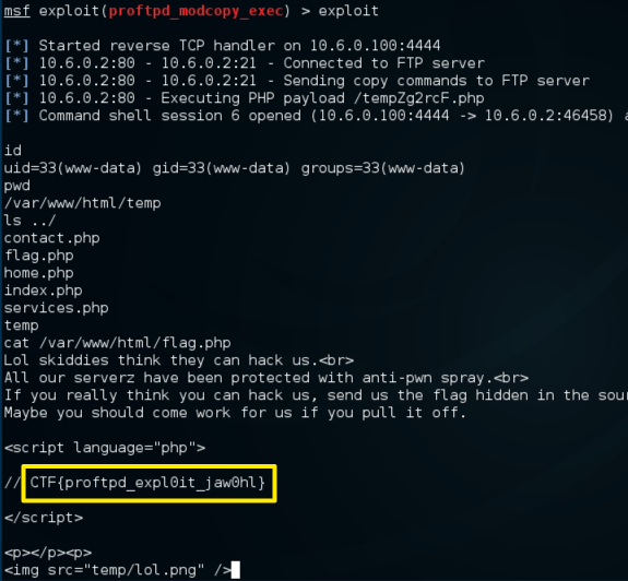 Nmap scan report for 10.6.0.2 Host is up (0.14s latency). Not shown: 98 closed ports PORT STATE SERVICE 21/tcp open ftp 80/tcp open http