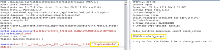 Inject {{config.from_pyfile('/tmp/owned.cfg')}} to add the new item to the config object.
