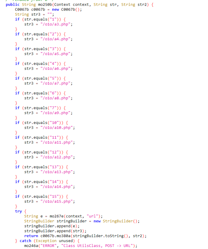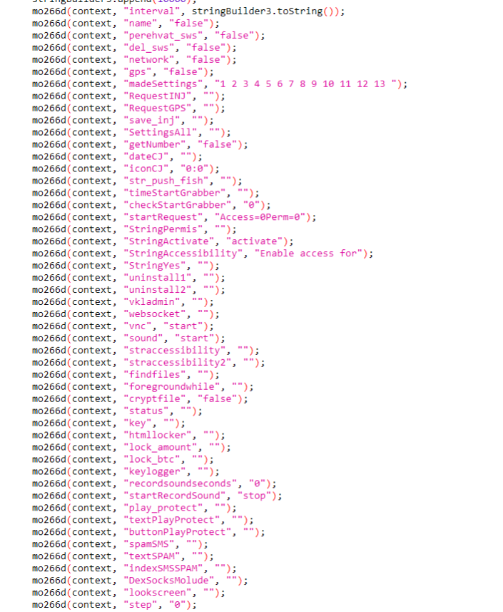 Uygulamanın etkilediği, telefon üzerinde hedef aldığı uygulama listesi paket içerisinde statik olarak eklenmiş .
